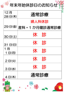 年末年始 休診日のお知らせです。